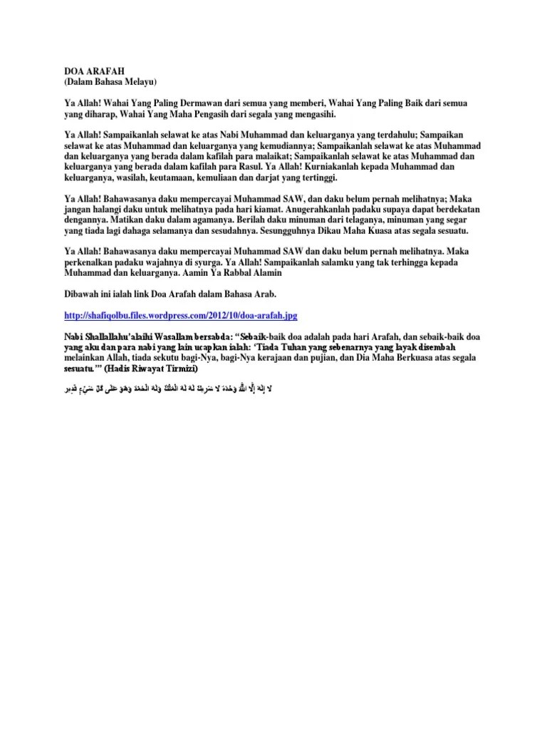 Doa Arafah Dalam Bahasa Melayu - Jom Solat Perbanyakkanlah Berdoa Dengan Doa Yang Terbaik Pada Hari Arafah Seperti Yang Diajar Oleh Rasulullah ï·º Saidina Abdullah Bin Amru Bin Al Ash Radhiayallahu Anhuma Menyatakan Bahawa Rasulullah ï·º Pernah Bersabda